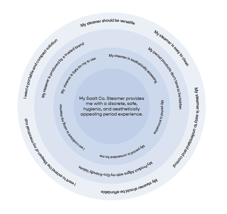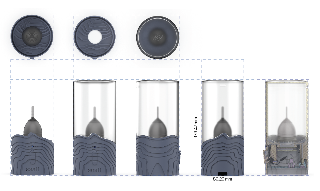 I aimed for Saalt’s product to fit within the highlighted space. The Saalt team and I wanted to keep the device simple for those new to feminine hygiene.